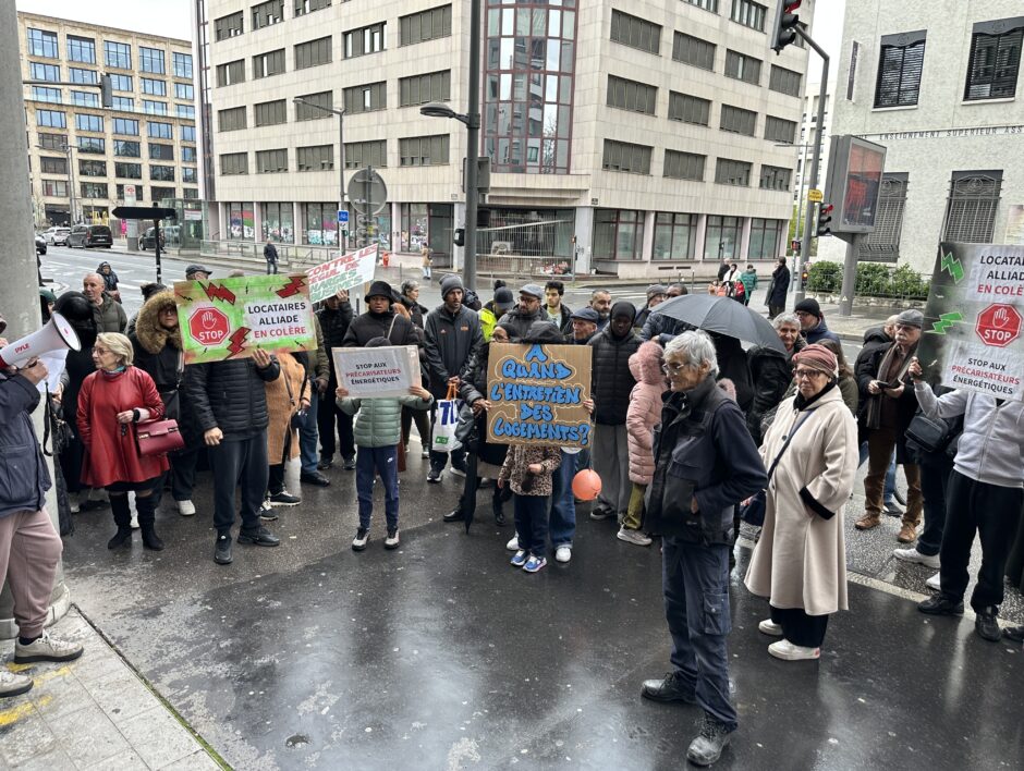 Étranglés par des rappels de charge, des locataires se sont rassemblés devant le siège d’Alliade Habitat pour manifester leur incompréhension.